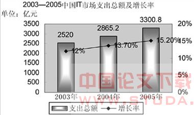 20世纪80年代以来,我国IT市场一直处于迅猛发展的时代,尤其是在互联网商务、宽带家庭上网、互联网用户、IT 支出以及电信支出等方面增长的速度非常快(见图表1和图表2)。互联网数据中心(IDC)对全球IT做过一次展望,从 2005~2009 年的5年间世界各国IT 支出的年增长率为美国的增长率是5%,西欧是不到6%,日本是在1~2% 之间,中国则是13.3%。面对如此巨大的上浮空间,我们相信中国的大量需求将使全球IT设备的供应商都感到非常振奋,且从中国的现状和本地的实际需求来看,我国将是最大的IT市场。